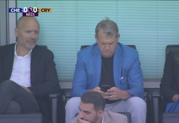 > 太败兴了!切尔西雇主伯利垂头玩手机,浑家领导后立马收起看比赛