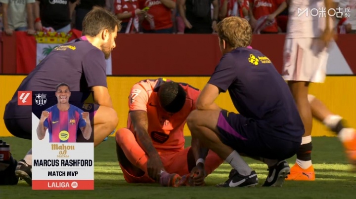 赛后转播镜头败露,本场比赛的全场最好给到为巴萨打进一球的拉什福德。