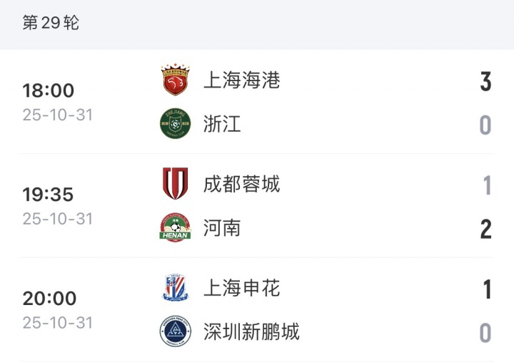 11月03日讯 中超第29轮,成王人蓉城输球退出争冠行列,上海海港、上海申花保留争冠悬念,两队需要恭候22天方才揭晓冠军包摄。