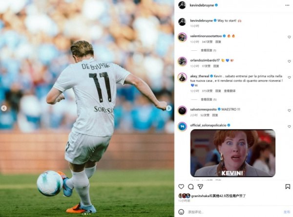 意甲首战破门,德布劳内社媒晒破门霎时:以可以的款式开启新赛季