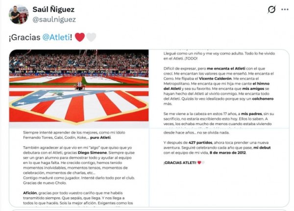 萨乌尔告别马竞:我谢意17年来我在这里遭遇的每一个东谈主