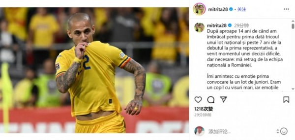 米特里策:决定从罗马尼亚国度队退役 我信服这是最正确的遴选