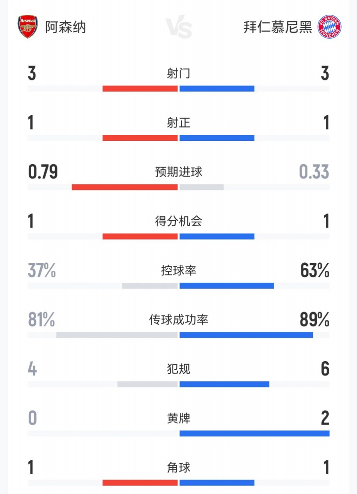 11月27日讯 欧冠联赛第5轮,阿森纳半场暂时1-1拜仁。