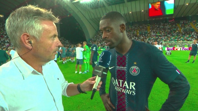 8月14日讯 在今天凌晨进行的欧洲超等杯,巴黎圣日耳曼2-2战平热刺,并在点球大战4-3顺利夺冠。赛后巴黎圣日耳曼球员登贝莱禁受了采访。
