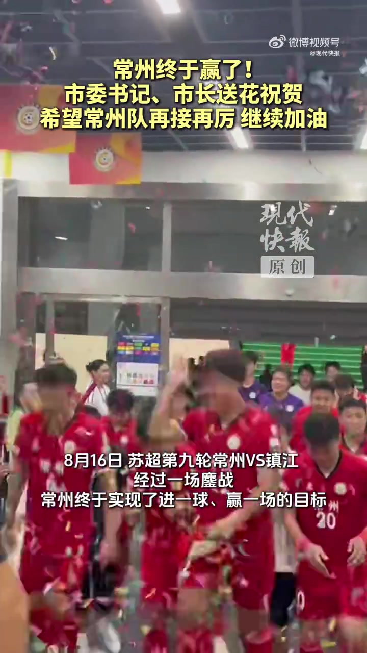 8月17日讯 江苏省城市足球联赛第9轮,常州队1-0打败镇江队,得回赛季首球+首胜。据《当代快报》报说念,赛后,常州市委布告王剑锋、市长周伟为球员息争释送花祝福。