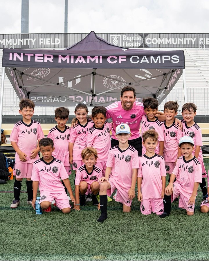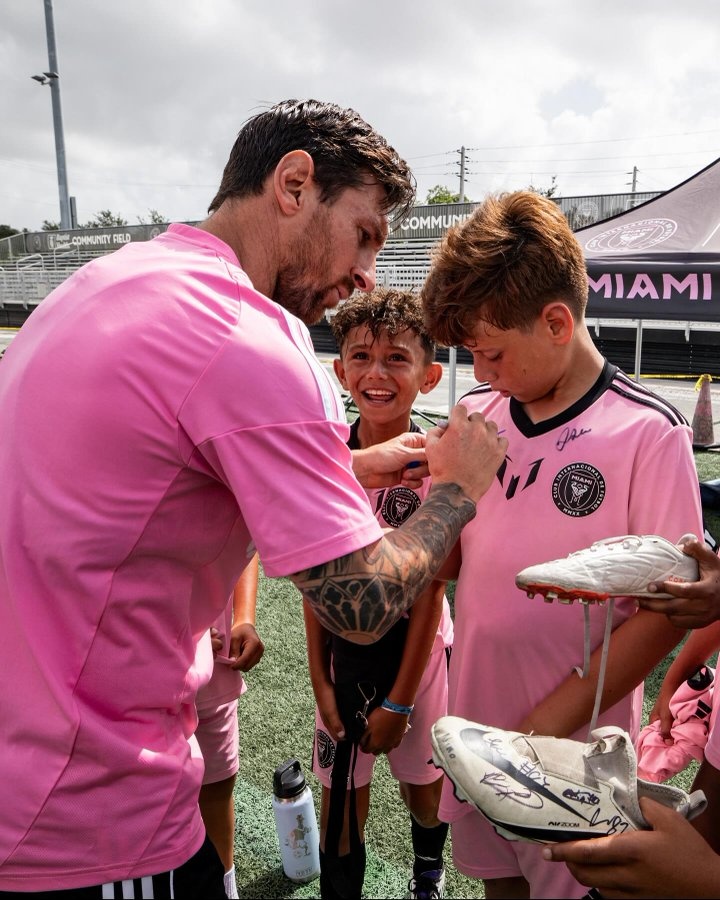 梅西出席迈阿密海外青训学院的作为,与小球员互动,为他们签名并合影。