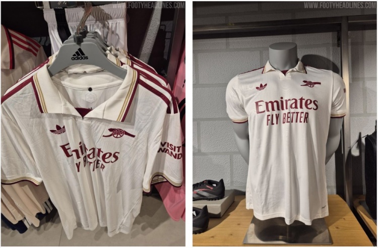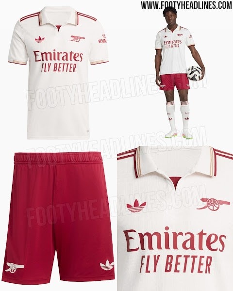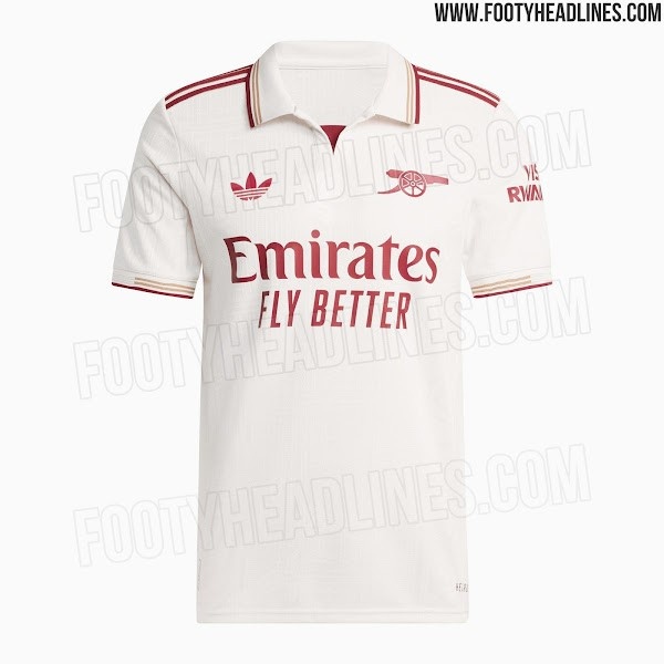 7月31日讯 足球装备网站footyheadlines流露阿森纳25-26赛季第三客场球衣信息,球衣主色彩为白色,红色(该网站将其形色为褐红色)以及金色来进行搭配点缀。