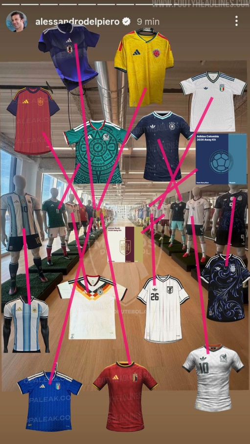 提前流露?皮耶罗社媒晒阿根廷西班牙等国2026年球衣,很快删除