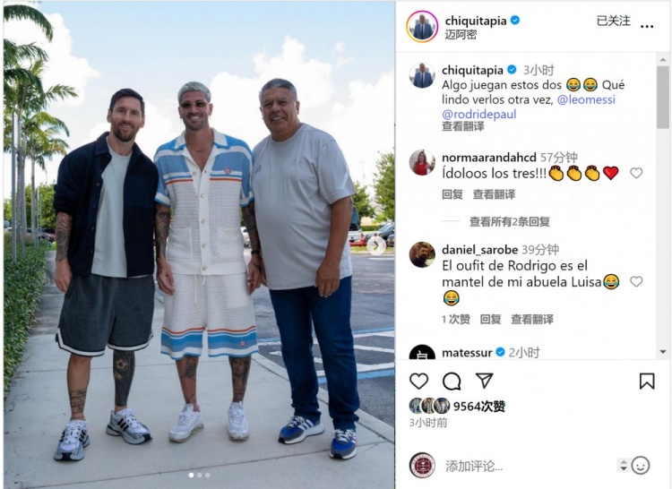 塔皮亚社媒晒出与梅西、德保罗的合照,簸弄:“这两个家伙在搞什么表情😂😂很快意再次见到你们。”