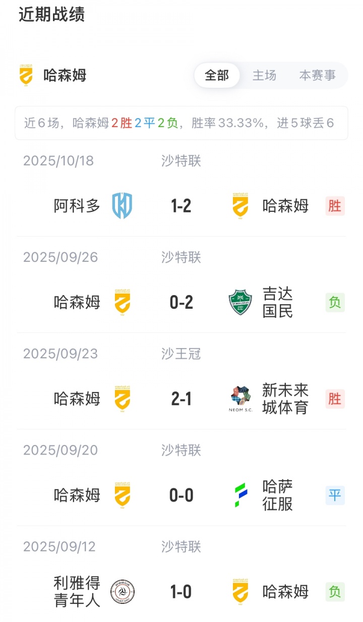 10月26日讯 沙特联第6轮,哈森姆主场迎战利雅得告捷,赛前首发名单公布。