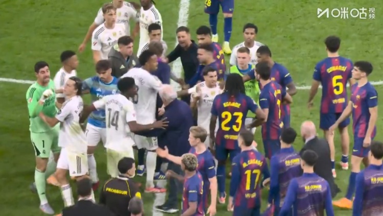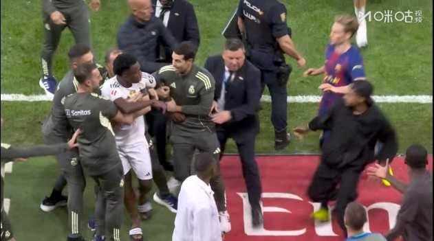 安保介入!皇马巴萨赛后爆发大规模梗阻,维尼修斯亚马尔等东说念主参与