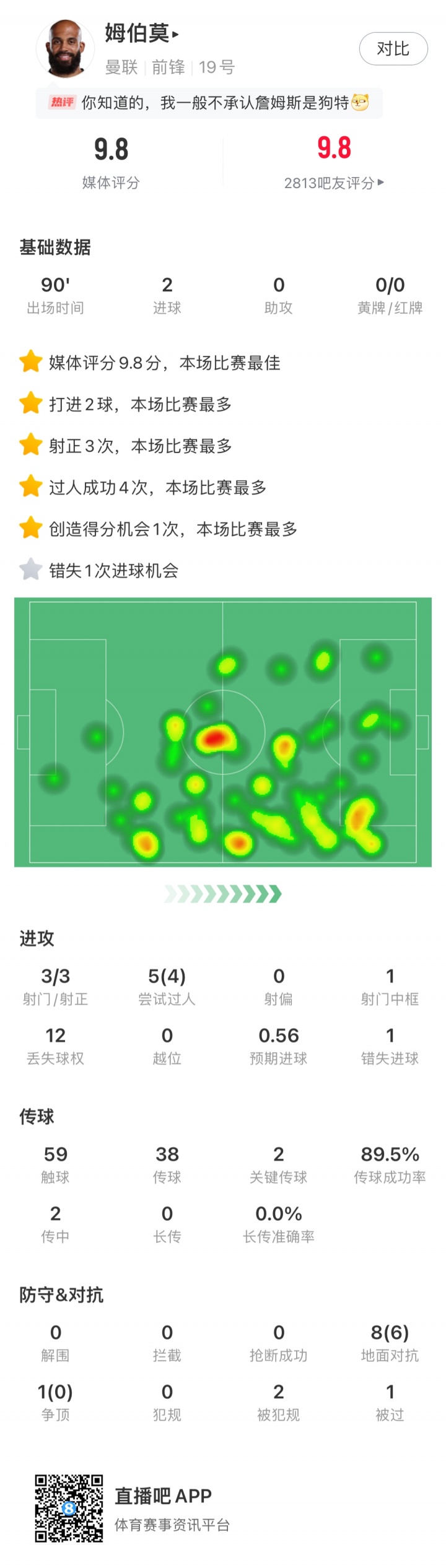 姆伯莫梅开二度,匡助曼联4-2礼服布莱顿,迎来英超三连胜!姆伯莫取得吧友近15万的投票,无悬念当选【X咪咕体育英超第9轮最好球员】!