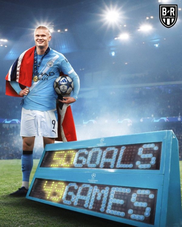 历史最快!哈兰德打进欧冠50球用49场比赛,范尼和梅西分列二三位