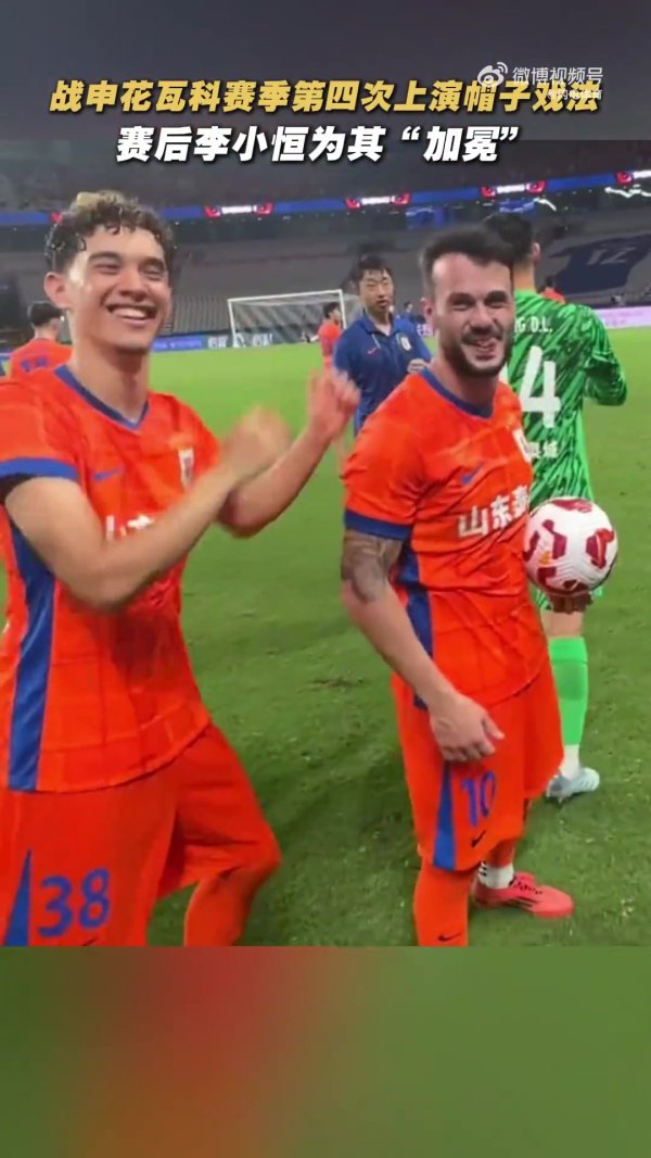 瓦科对阵申花献技帽子戏法,李小恒赛后为其“戴金冠”