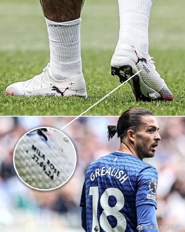 格拉利什昨日比赛一稔一对印有儿子名字的球鞋,赛中送出2次助攻