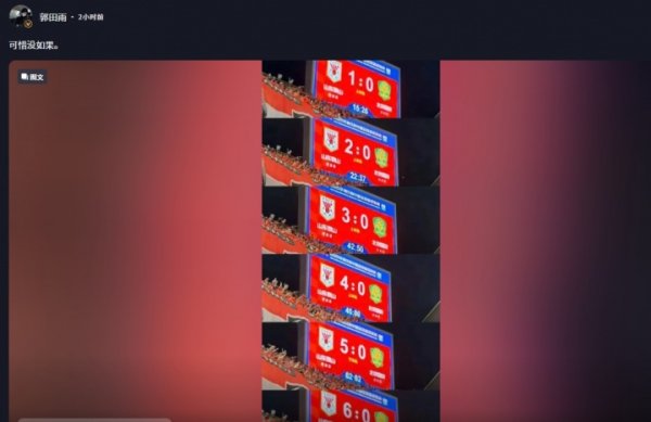 26岁郭田雨时隔3年更新社媒,晒京鲁大战比分:可惜没若是