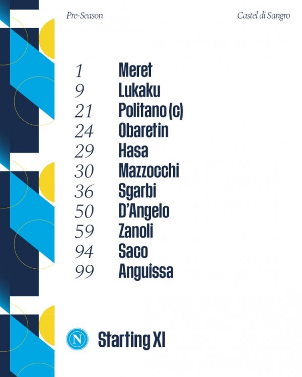 那不勒斯友谊赛首发:卢卡库、波利塔诺、扎诺利、安古伊萨在列