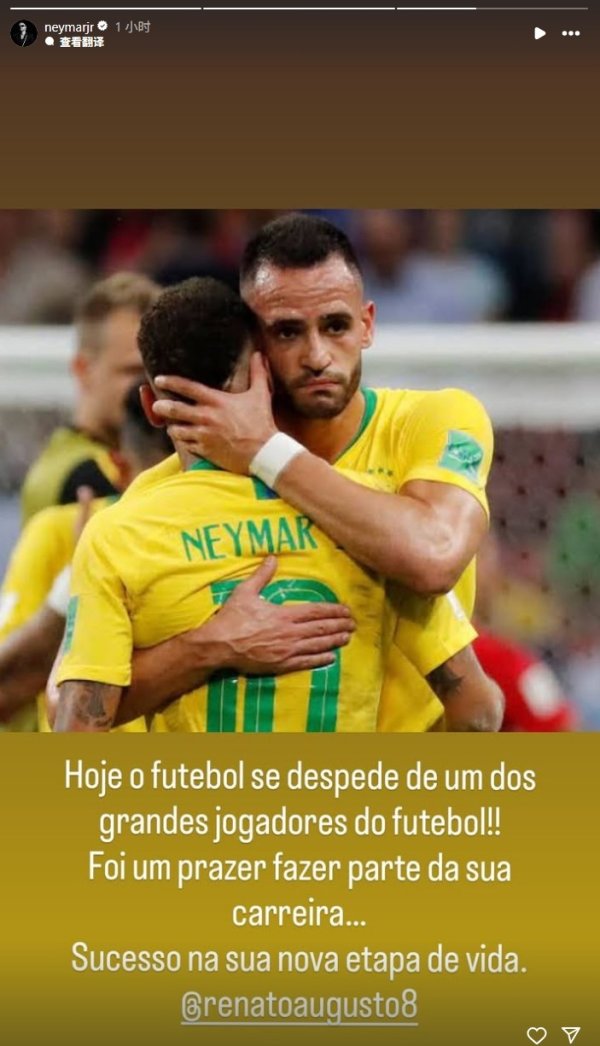 奥古斯托退役,内马尔道喜:今天足坛告别了一位伟大的球员