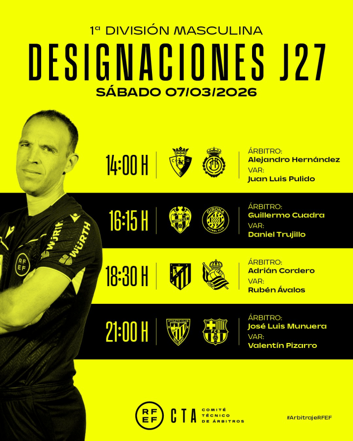值得一提的是,本场比赛VAR裁判为马德里籍裁判瓦伦丁-皮萨罗-戈麦斯。此前有媒体猜测他可能因上周一伯纳乌比赛中未判罚吕迪格对赫塔费球员迭戈-里科的膝撞而被暂时停用,不过此次他将继续担任本场比赛的视频助理裁判。