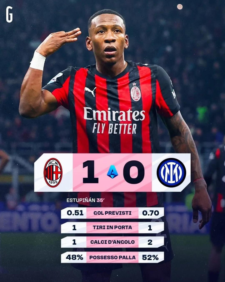 北京时间3月9日03:45,意甲联赛第28轮,AC米兰在主场圣西罗球场迎战国际米兰。上半场,姆希塔良失良机;第35分钟,福法纳直塞助攻,埃斯图皮尼安打进米兰处子球!半场结束,米兰1-0国米。易边再战,莱奥、迪马尔科相继失良机!巴斯托尼犯规后伤退。最终,AC米兰1-0击败国际米兰,本赛季意甲双杀国米!德比战取得3连胜,近7次对决5胜2平不败;国米仍7分领跑意甲。