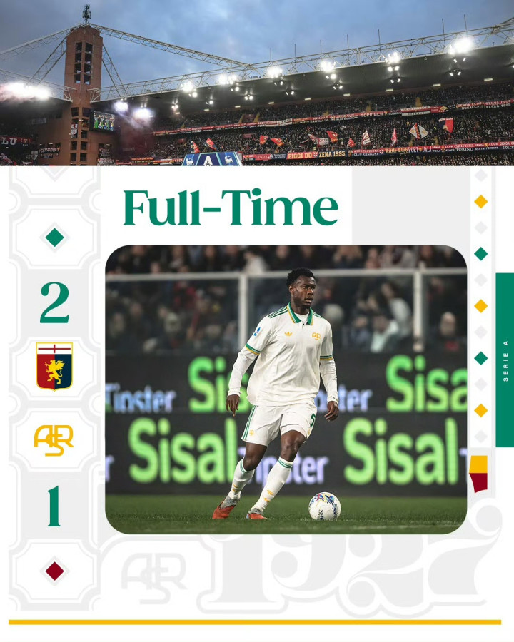 北京时间3月9日01:00,意甲联赛第28轮,热那亚在主场费拉里斯球场迎战罗马。上半场,双方均无建树。易边再战,佩莱格里尼送点,梅西亚斯点射打破僵局;恩迪卡头球迅速扳平!马伦进球被吹;维克托·维蒂尼亚替补登场打进制胜球!最终,罗马1-2客负热那亚,意甲4轮不败终结;热那亚拿到保级路上关键3分,暂时领先降级区6分。