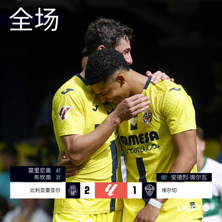 西甲 比利亚雷亚尔 2-1 埃尔切