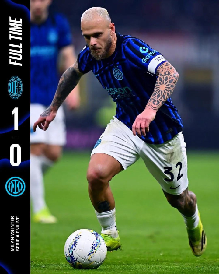 国米首发:1-索默、31-比塞克(80’17-迪乌夫)、25-阿坎吉、95-巴斯托尼(68’30-奥古斯托)、11-路易斯·恩里克(59’2-邓弗里斯)、23-巴雷拉(68’16-弗拉泰西)、7-泽林斯基、22-姆希塔良(59’8-苏契奇)、32-迪马尔科、94-皮奥·埃斯波西托、14-博尼