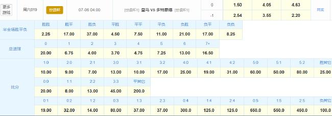 竞彩官方为本场比赛开出1.5(皇马) 4.05(平) 4.63(多特)的数据组合,对皇马的救援力度了然于目。比分方面,皇马2-1取胜的赔率最低为1赔7,两边1-1战平为1赔8第二低,皇马2-0取胜为1赔9,即便3-1的比分也仅有1赔10,而多特取胜的比分赔率最低也要1赔14。概述来看,本场皇马无论实力、牌面、交锋热情均占据上风,有望90分钟平直拿下敌手晋级半决赛!