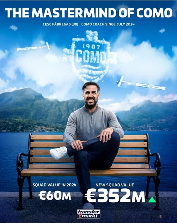 德国转会市场更新意甲球员身价,科莫全队总身价由1月的3.132亿欧元涨至3.52亿欧元,单期涨幅达12.3%。若将时间轴拉至2024年,当时球队总身价仅为6000万欧元,不到两年时间,身价暴涨超过486%。