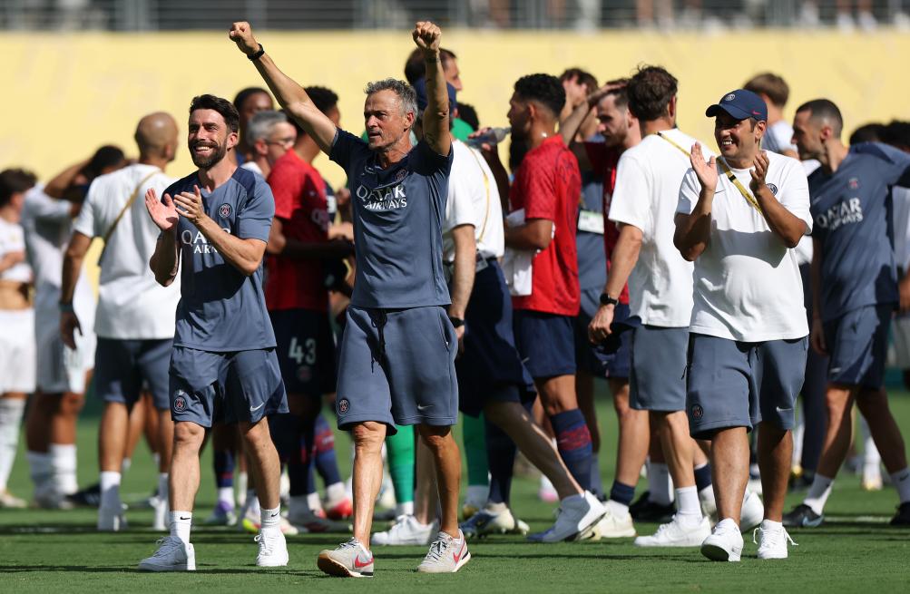 巴黎圣日耳曼队主老师恩里克(前右)在比赛后庆祝。新华社记者 李明 摄 “咱们离完好的赛季还差一场胜利,淌若莽撞赢下临了的这场决赛,咱们将为巴黎创造新的历史,这对咱们和咱们的球迷王人相配迫切。”恩里克说。