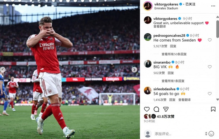 本场比赛阿森纳新援约克雷斯梅开二度,赛后他在个东谈主社媒晒出象征性庆祝当作,配文写谈:“漂亮的收效!球迷们的援救难以置信!”
