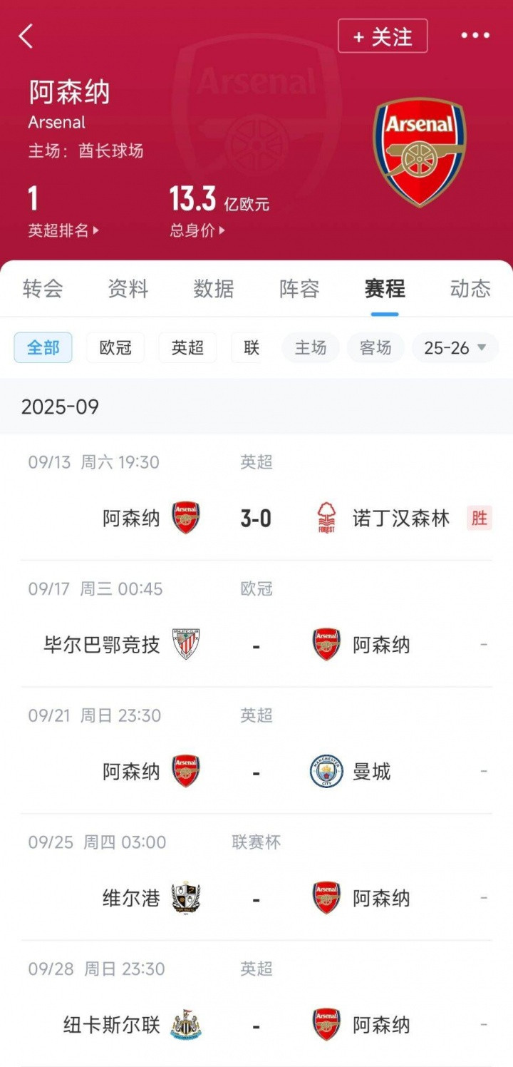 强敌相继而来! 阿森纳3天后欧冠打毕巴、周末打曼城、月底打纽卡