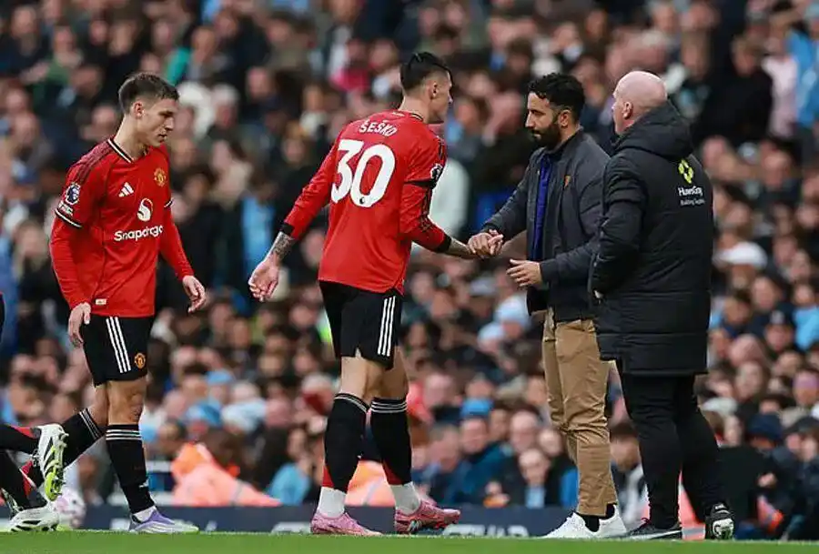 这场比赛曼联属于技不如东谈主。阿莫林这场比赛显明念念要乘他病要他命的,毕竟曼城最近的比赛情状并不好。是以阿莫林拿出了一套相对冒险的体系:塞斯科+姆贝乌莫+阿玛德迪亚洛搭档锋线,少了库尼亚+芒特,曼联的三叉戟履行上莫得前腰。那么怎样办呢?阿莫林的样式是:B费是队长,要多付出,是以B费顶上去担任前腰。这下好了,B费要在后腰的位置郑重发牌,又要冲上去前腰位置郑重终末一传,这即是曼联欲罢不成的原因之一,因为曼联在大部分情况下,其实独一单后腰。那么若那儿理单后腰的问题?阿莫林的样式是约罗省略顶出去。好了,这个顶出去,跟曼联的背面两个失球关沟通,曼联第二个失球,即是约罗顶出去之后,哈兰德从德里赫特+卢克肖之间的位置跑过,从而拿到单刀的契机。