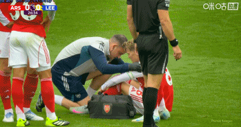 厄德高被利兹联球员放倒右肩疑似受伤,队医查验后仍能坚握比赛