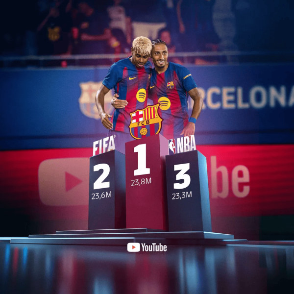 巴萨油管账号订阅超FIFA与NBA, 成群众订阅最多体育机构账号