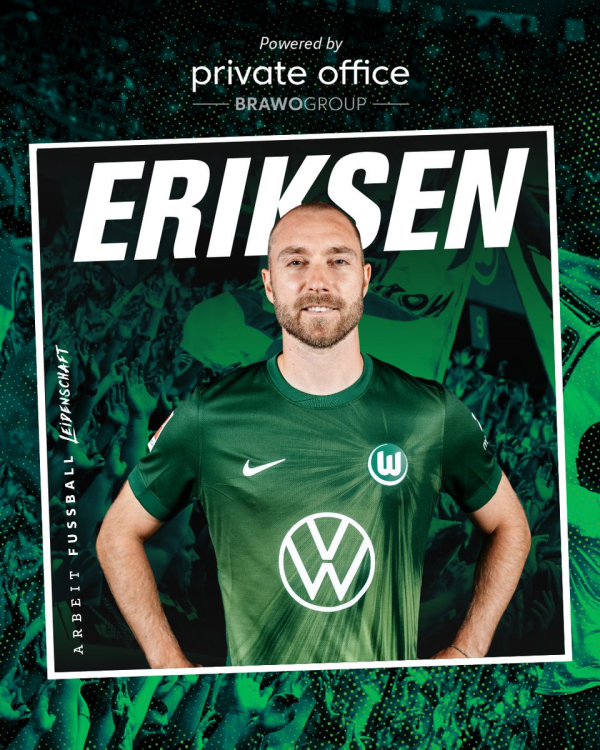官方:33岁丹麦国脚埃里克森解放身加盟沃尔夫斯堡,签约2年