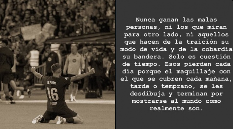 什么情况👀巴萨中场费尔明发社媒称坏东说念主历久不会到手,随后删除