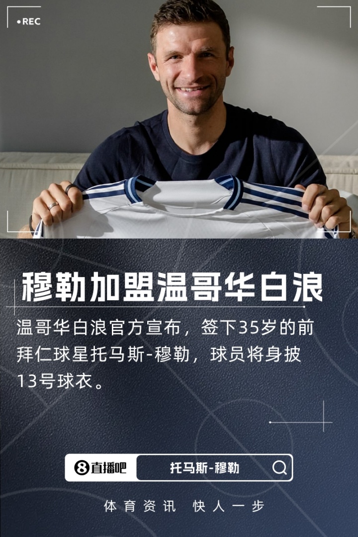 温哥华白浪官方告示,签下35岁的前拜仁球星穆勒,他将身披13号球衣。