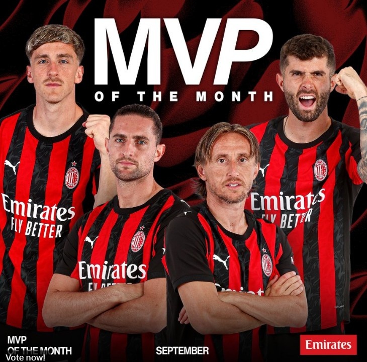 AC米兰官方9月最好球员候选:莫德里奇、普利西奇、拉比奥特在列