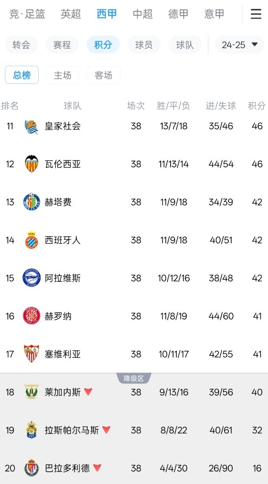 而在上赛季,塞维利亚情况则大不交流,总计赛季,他们10胜11平17负,最终拿到41分,仅以1分上风保级告捷。