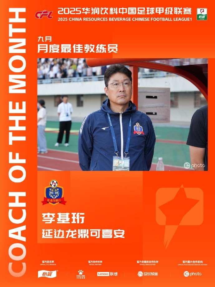 10月31日讯 延边龙鼎主帅李基珩当选为了中甲联赛9月最好讲明。