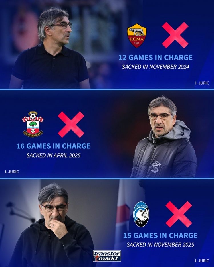 11月12日讯 亚特兰大晓示主帅尤里奇下课,尤里奇一年被罗马、南安普顿、亚特兰大三家俱乐部除名,德国转会阛阓列出了本世纪耕种最短时刻内蚁集被三家俱乐部除名榜单,前四名尤里奇独占两席。