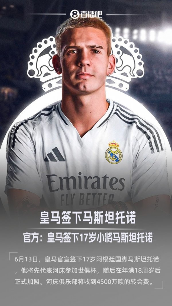 7月28日讯 据记者Uriel Iugt报说念,马斯坦托诺本周末前去西班牙与皇马会合,进入季前集训。 皇马今夏从河床签下17岁阿根廷膺惩手马斯坦托诺,球员将不才个月年满18岁。 Uriel Iugt骄慢,马斯坦托诺将在本周末前去西班牙,开启我方的皇马糊口。......查看更多