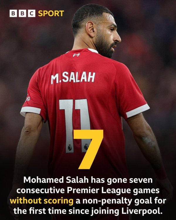 真老了?萨拉赫贯穿7场英超莫得非点球进球,加盟利物浦以来初度