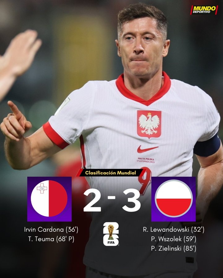 上半场泽林斯基助攻莱万,为波兰先拔头筹,卡多纳为马耳他扳平比分,下半场莱万助攻维索莱克破门,图玛点射破门还以感情,两队比分2-2战平,第85分钟泽林斯基攻入制胜进球,最终波兰客场3-2校服马耳他。