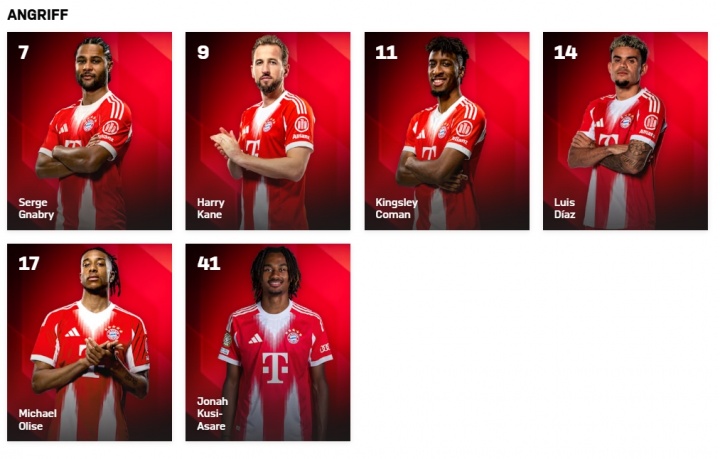 拜仁官网昨日的锋线名单↓
