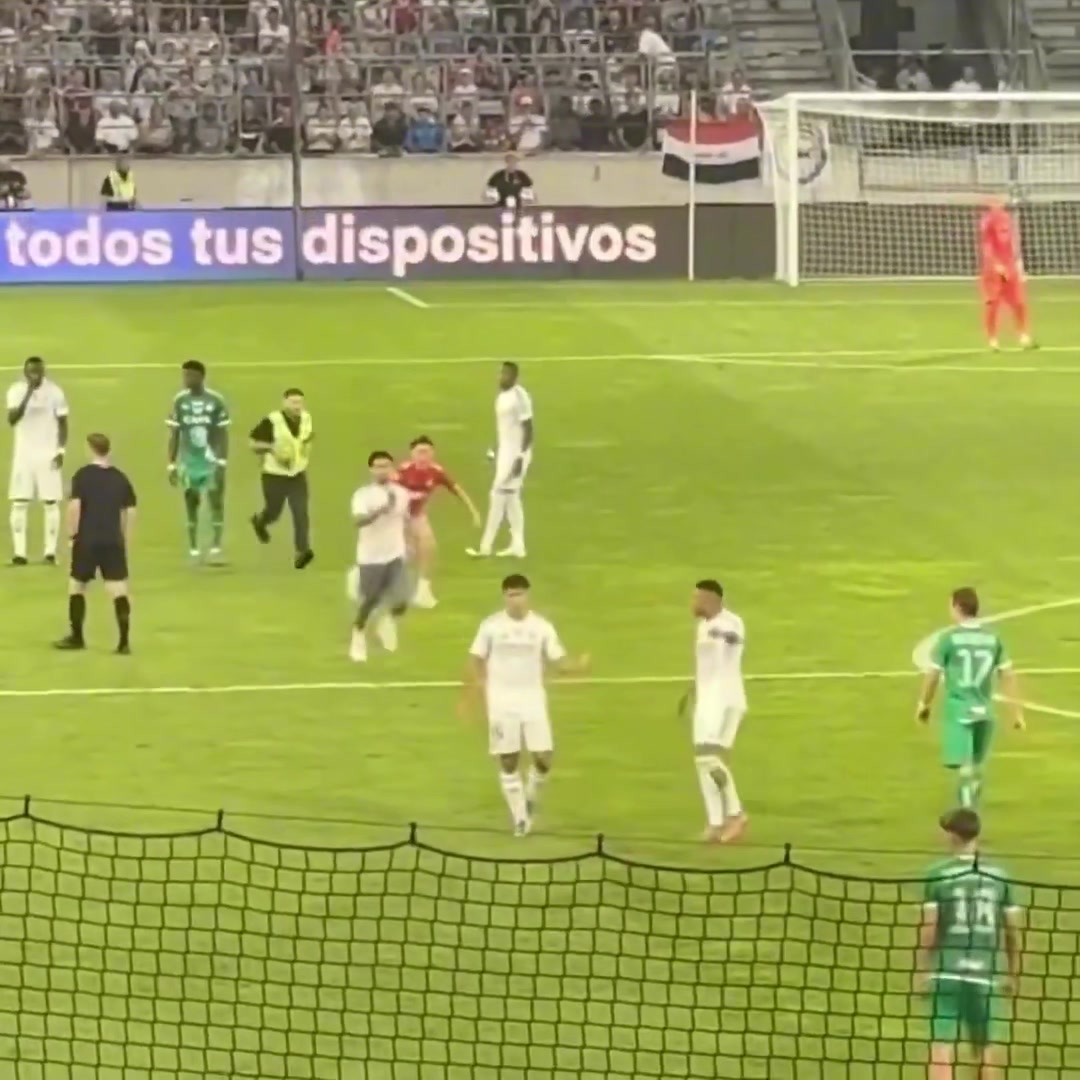 宠粉!球迷冲入场内找姆巴佩自拍,姆总拦住保安痛快合影