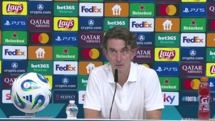 8月14日讯 欧洲超等杯决赛,热刺在老例时辰2比2与巴黎战平,临了在点球大战中惜败。赛后,热刺主帅弗兰克在新闻发布会上罗致了热刺记者阿拉斯代尔-戈尔德与其他媒体的采访。