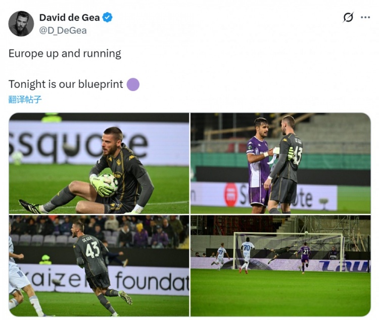 德赫亚社媒晒出比赛相片,并写说念:“欧战征途开启,今晚的阐扬即是咱们的蓝图。”
