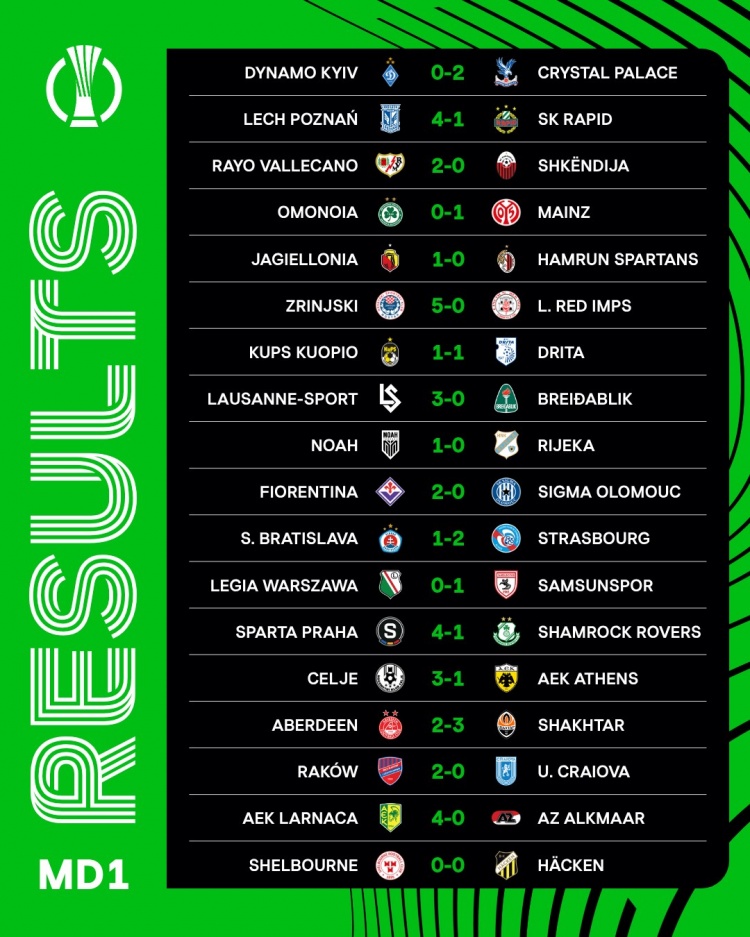 欧协联首轮赛果:水晶宫2-0基辅迪纳摩,巴列卡诺、佛罗伦萨取胜